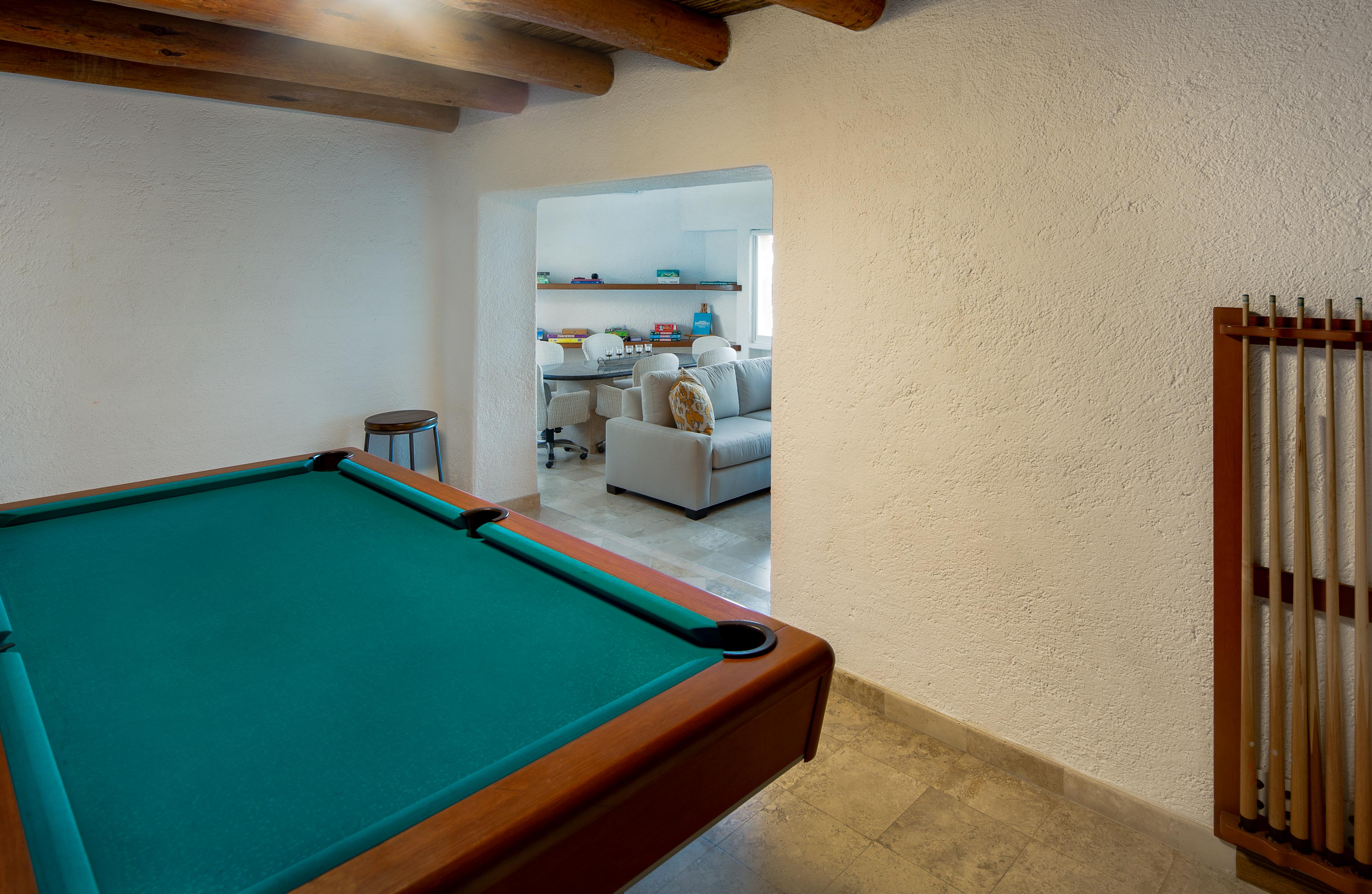 Designed with sophisticated Southwest-inspired architecture, this luxury villa combines natural elegance with high-end comfort. Inside, you’ll find beautifully appointed living spaces with wood-beamed ceilings, marble floors, and warm, inviting decor. The spacious bedroom suites feature plush furnishings and spa-like bathrooms, offering a serene place to unwind after a day in the sun.