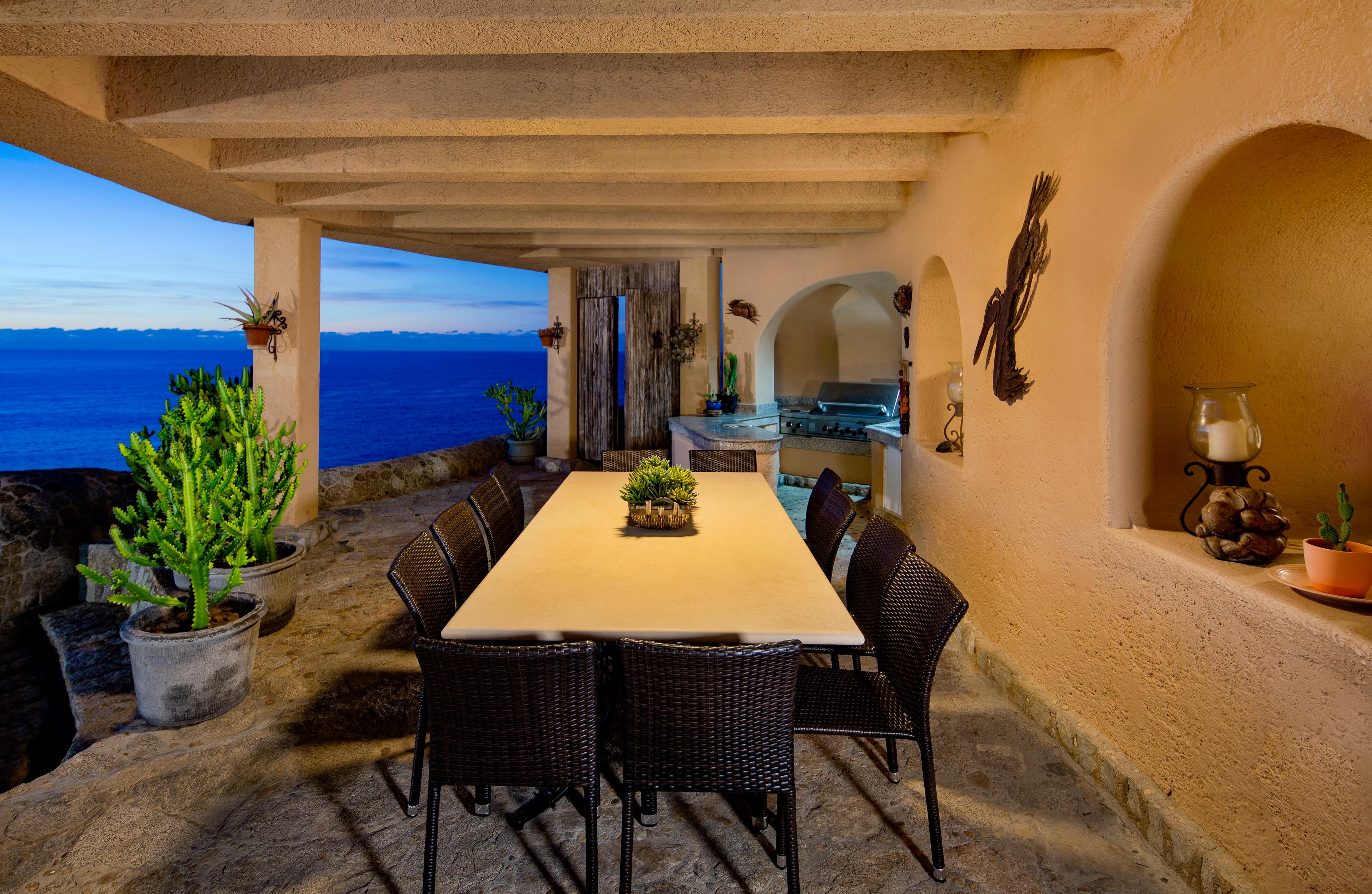 Casa Mirador is well-equipped for entertaining and relaxation alike, with a gourmet kitchen, a stylish bar area, and a private fitness room complete with a sauna. Outdoors, the ocean-view pool and patio provide the perfect setting for lounging, dining, and taking in the fresh Baja air. Enjoy the media system, gas grill, and plenty of space to gather with family or friends.