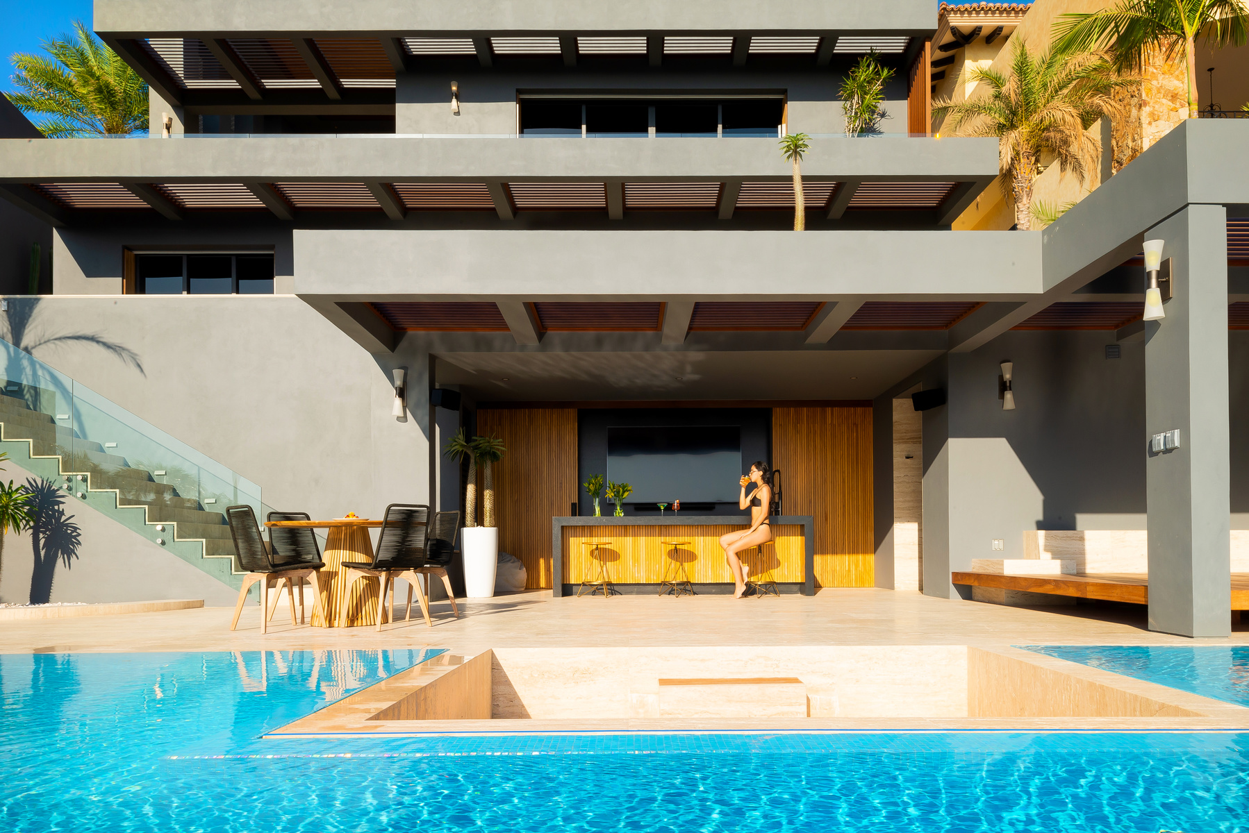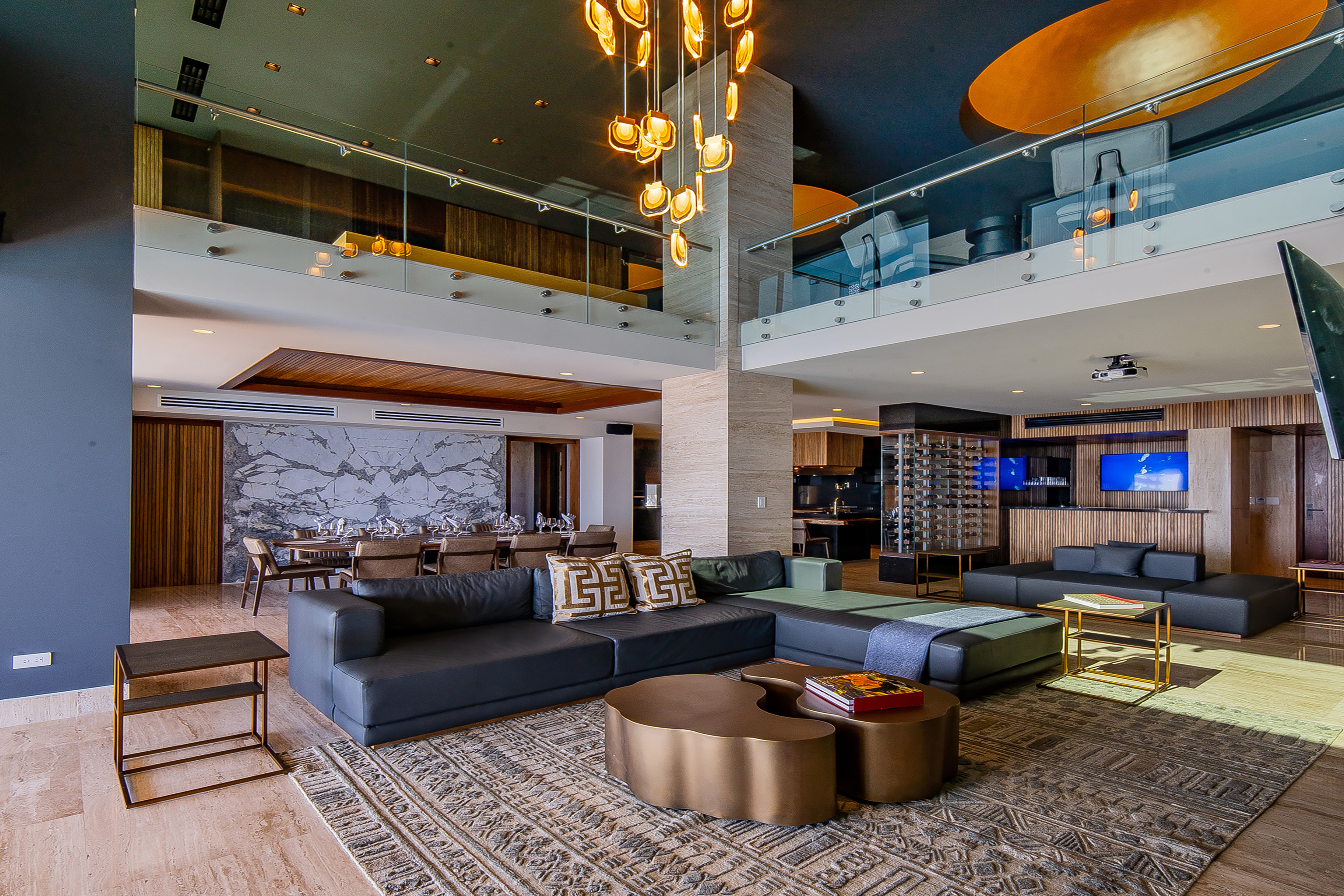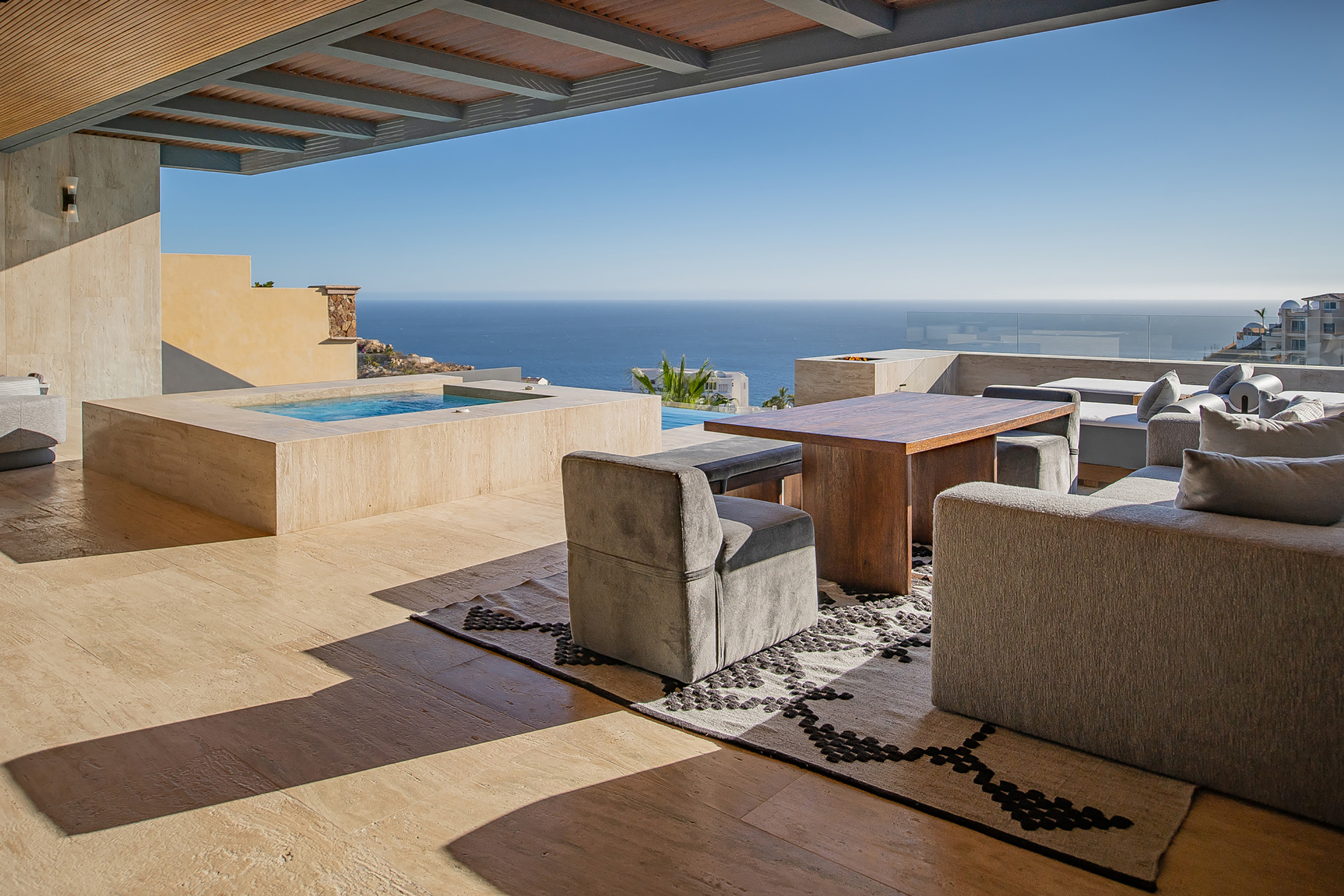 Two awe-inspiring terraces offer appealing outdoor living areas. One terrace is located in the main floor, highlighting both covered and open areas, a pool and jacuzzi, an outdoor pizza oven, a teppanyaki grill and an ocean-view deck. The other terrace is located at the lower level and offers a bar, lounge area, infinity pool with sunbathing area and superb ocean views.