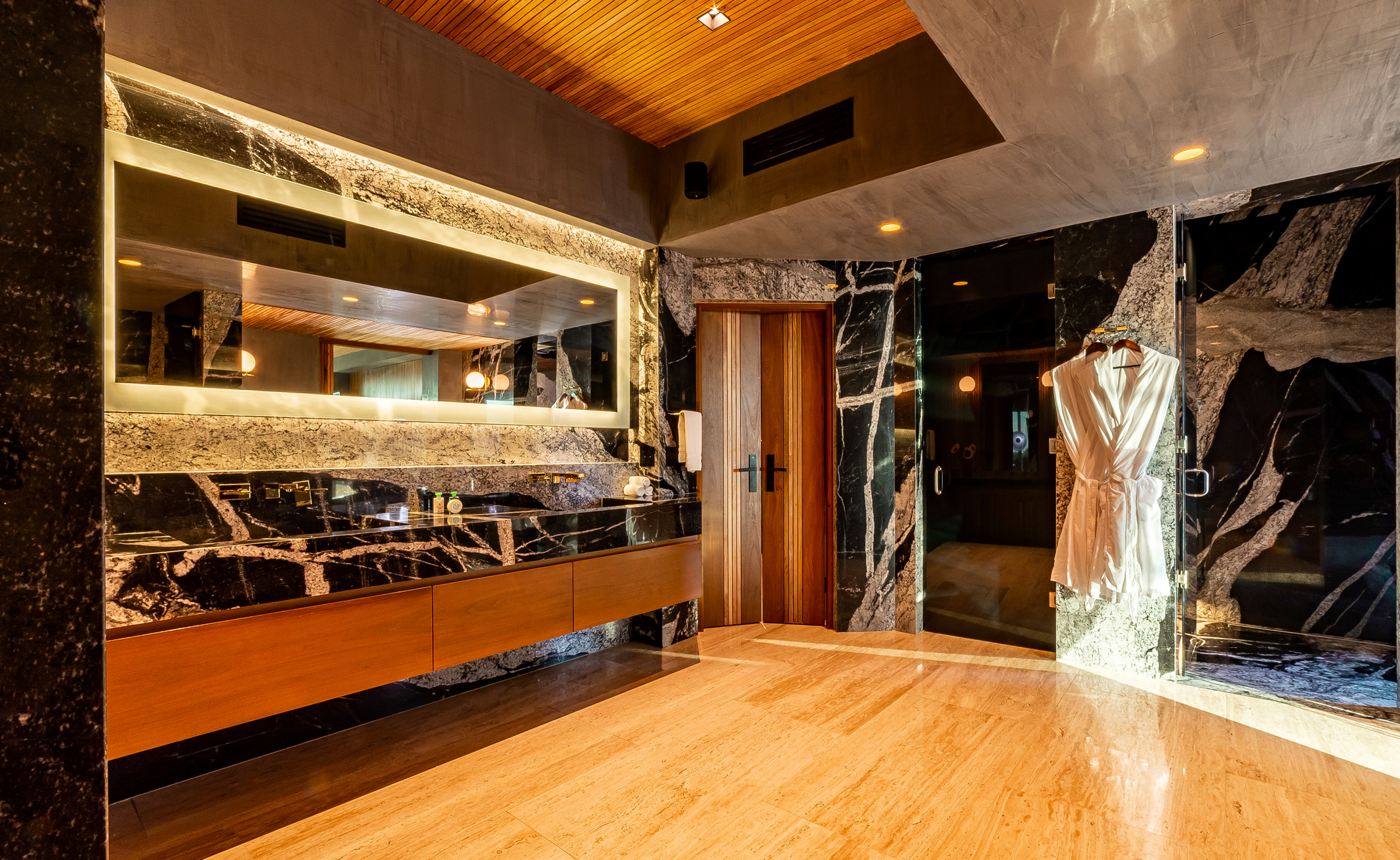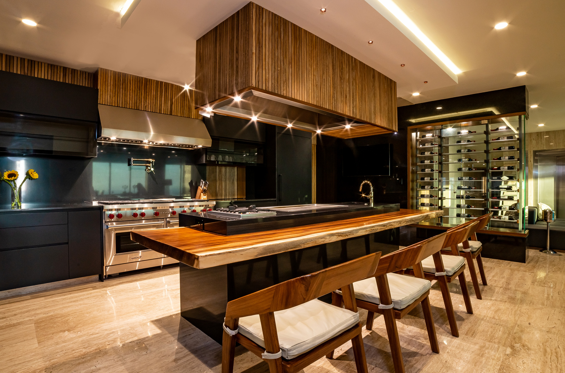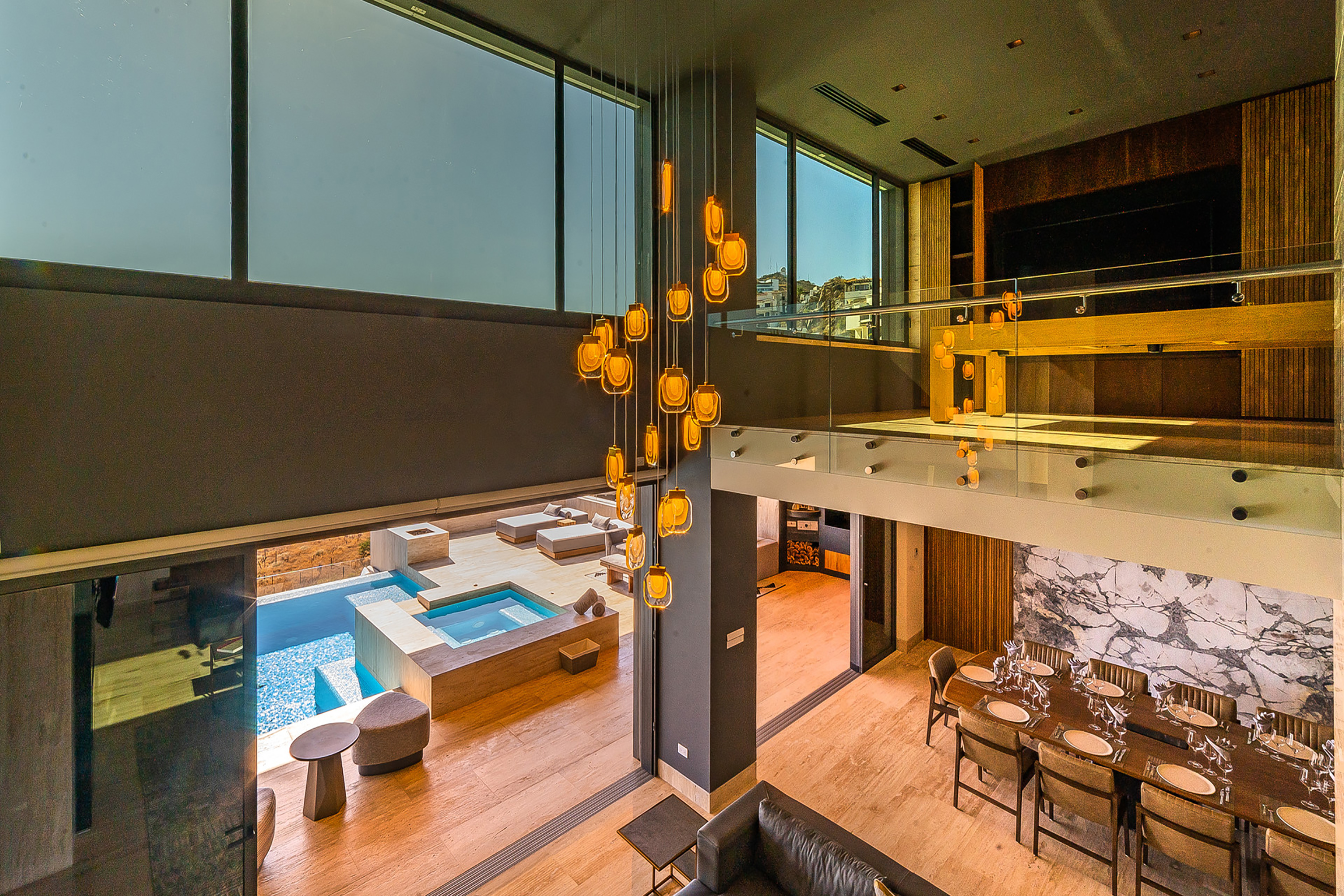 Two awe-inspiring terraces offer appealing outdoor living areas. One terrace is located in the main floor, highlighting both covered and open areas, a pool and jacuzzi, an outdoor pizza oven, a teppanyaki grill and an ocean-view deck. The other terrace is located at the lower level and offers a bar, lounge area, infinity pool with sunbathing area and superb ocean views.
