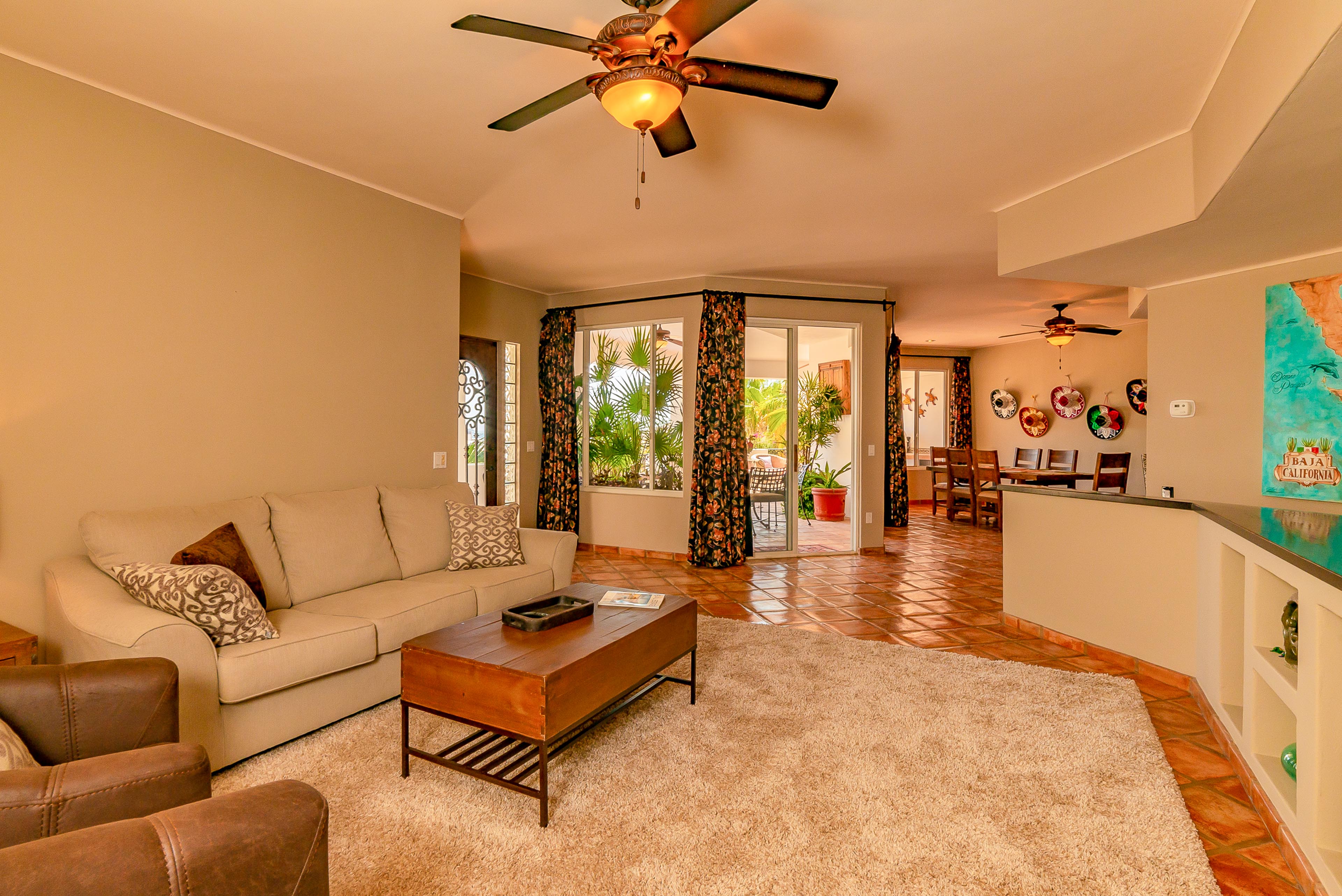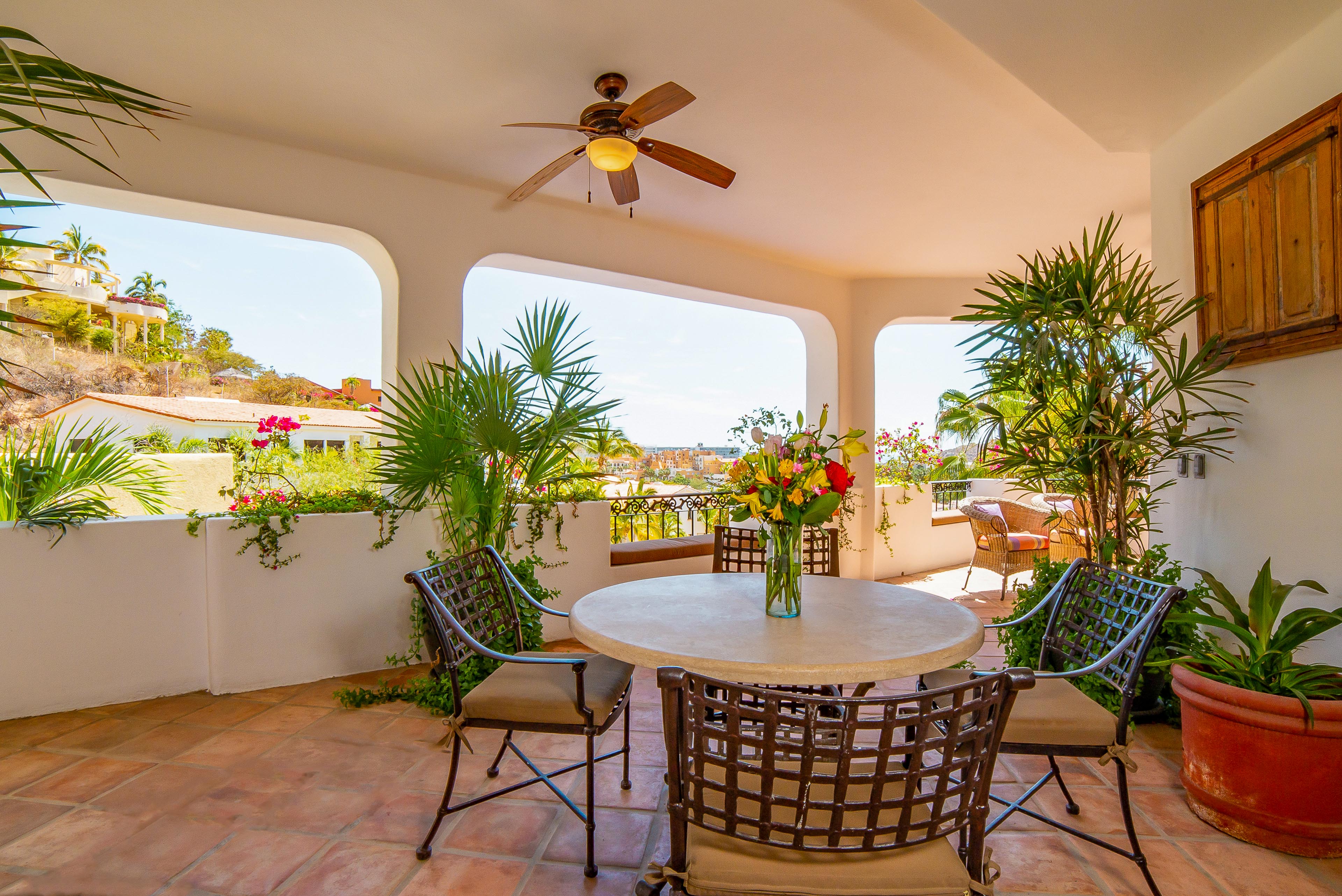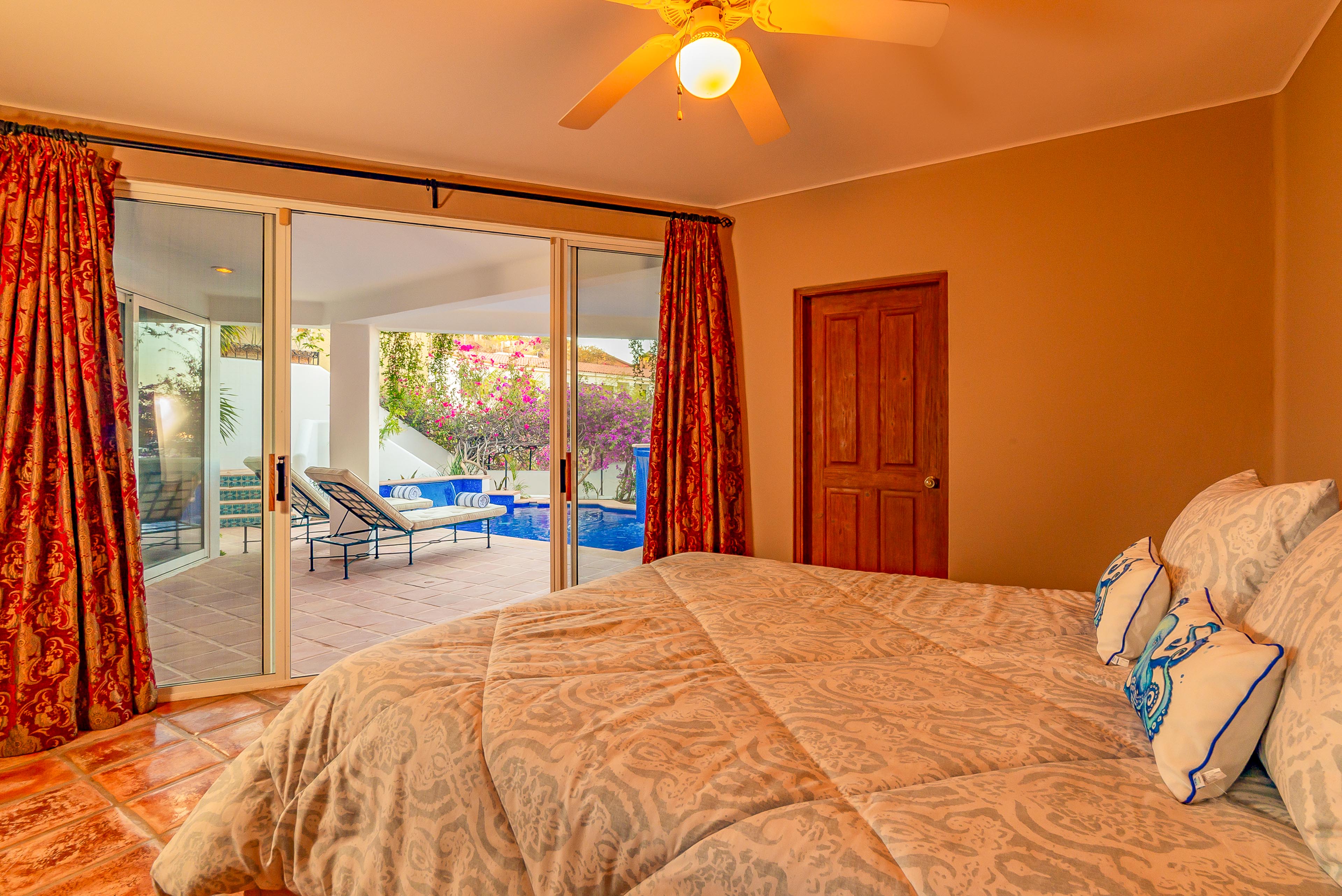 Over and above the great setting, you and your guests will appreciate the home’s amenities, tile floors and inviting bedrooms. Make your experience even better by arranging grocery prestocking, in-villa spa massages or chef services during your trip. At sundown, you’ll enjoy taking in sights of the shimmering downtown lights of Cabo in the distance.