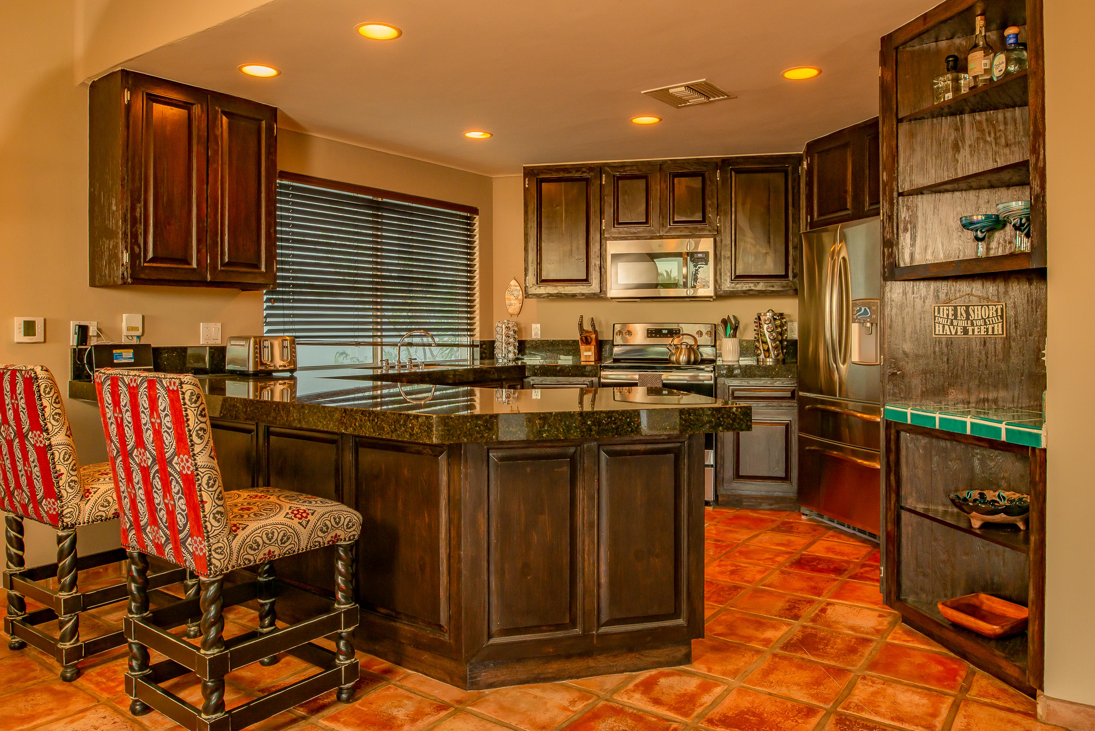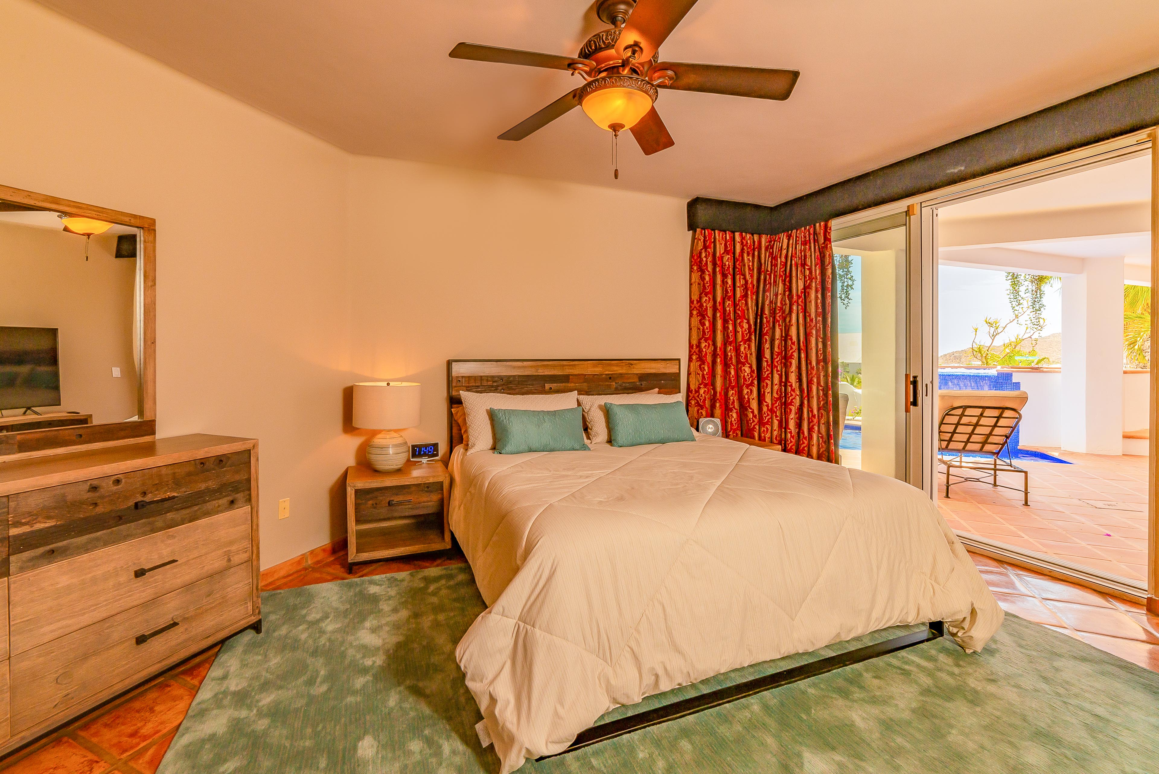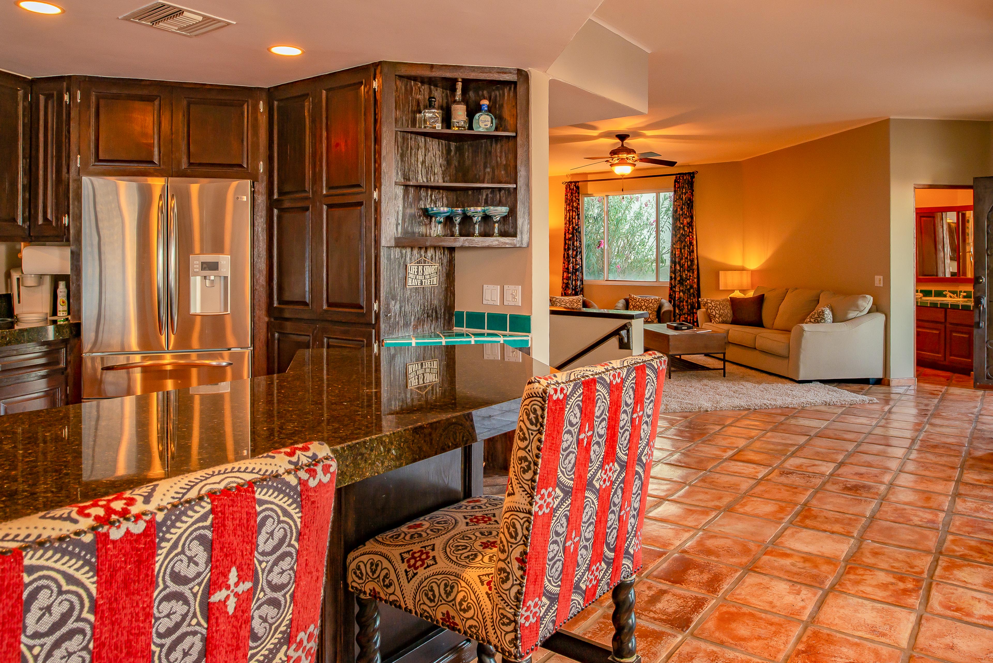 Over and above the great setting, you and your guests will appreciate the home’s amenities, tile floors and inviting bedrooms. Make your experience even better by arranging grocery prestocking, in-villa spa massages or chef services during your trip. At sundown, you’ll enjoy taking in sights of the shimmering downtown lights of Cabo in the distance.