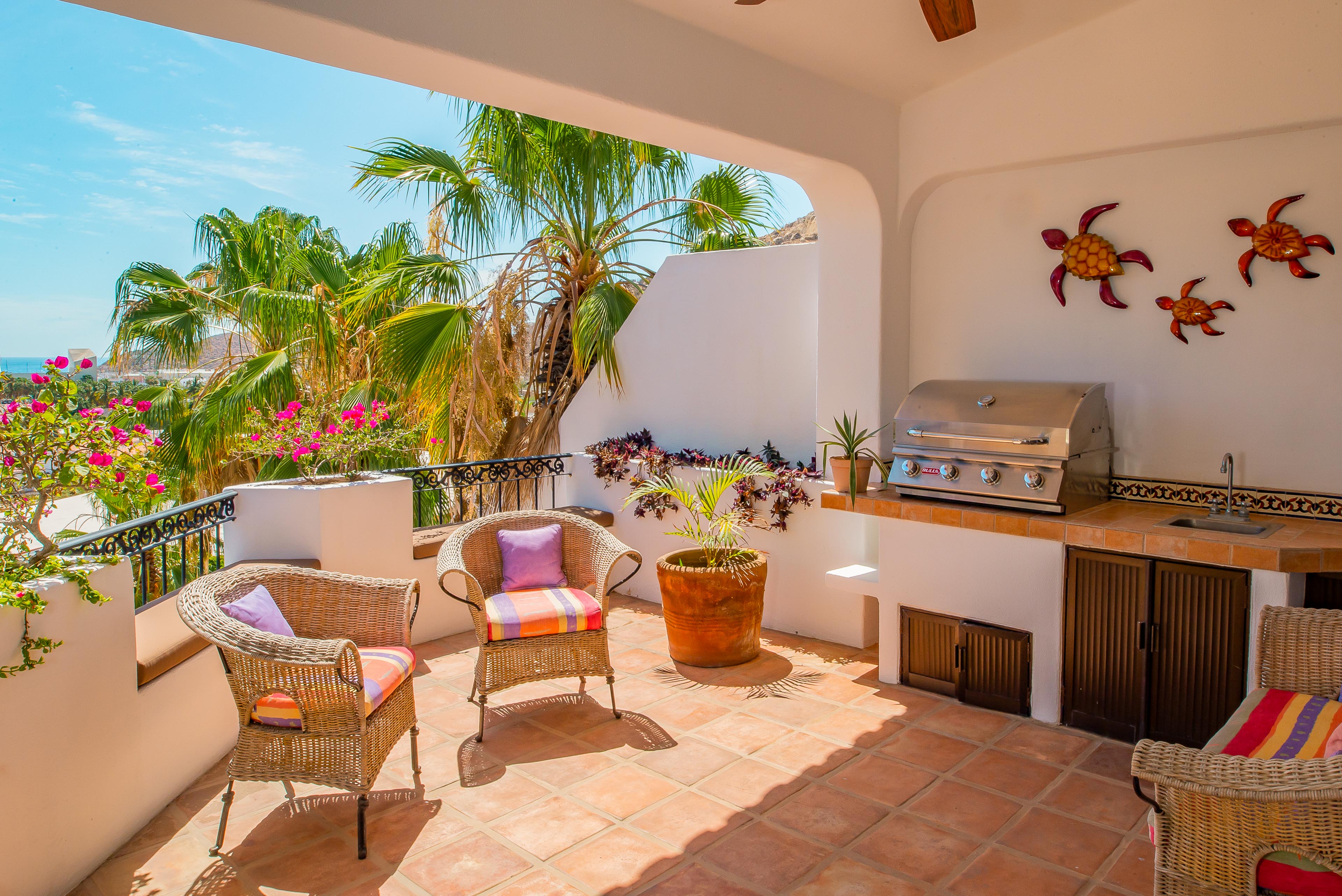 Relaxing and welcoming, Villa Colorado is a delightful home away from home when you’re vacationing in Cabo San Lucas. This impeccably maintained vacation rental features everything you need for an unforgettable escape, including your own pool, lovely views of Cabo San Lucas Bay, a shaded patio dining area, an oversized jacuzzi, new outdoor grill and a full kitchen. Plus, you’re within walking distance of the marina from this villa situated in the gated Pedregal community. Walk into town for restaurants and activities.