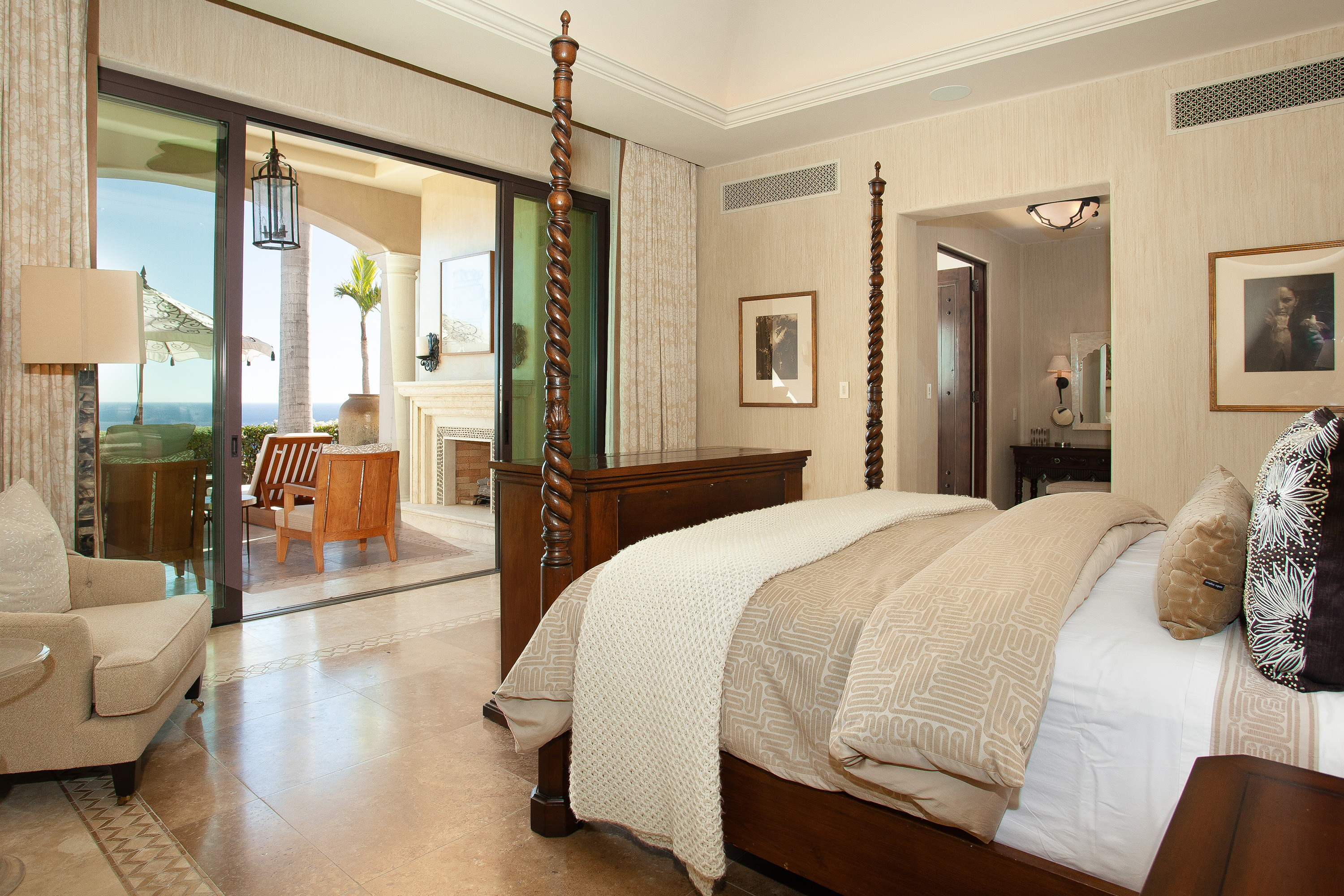 King bed, private bath w/ tub & shower, TV, terrace, ocean view