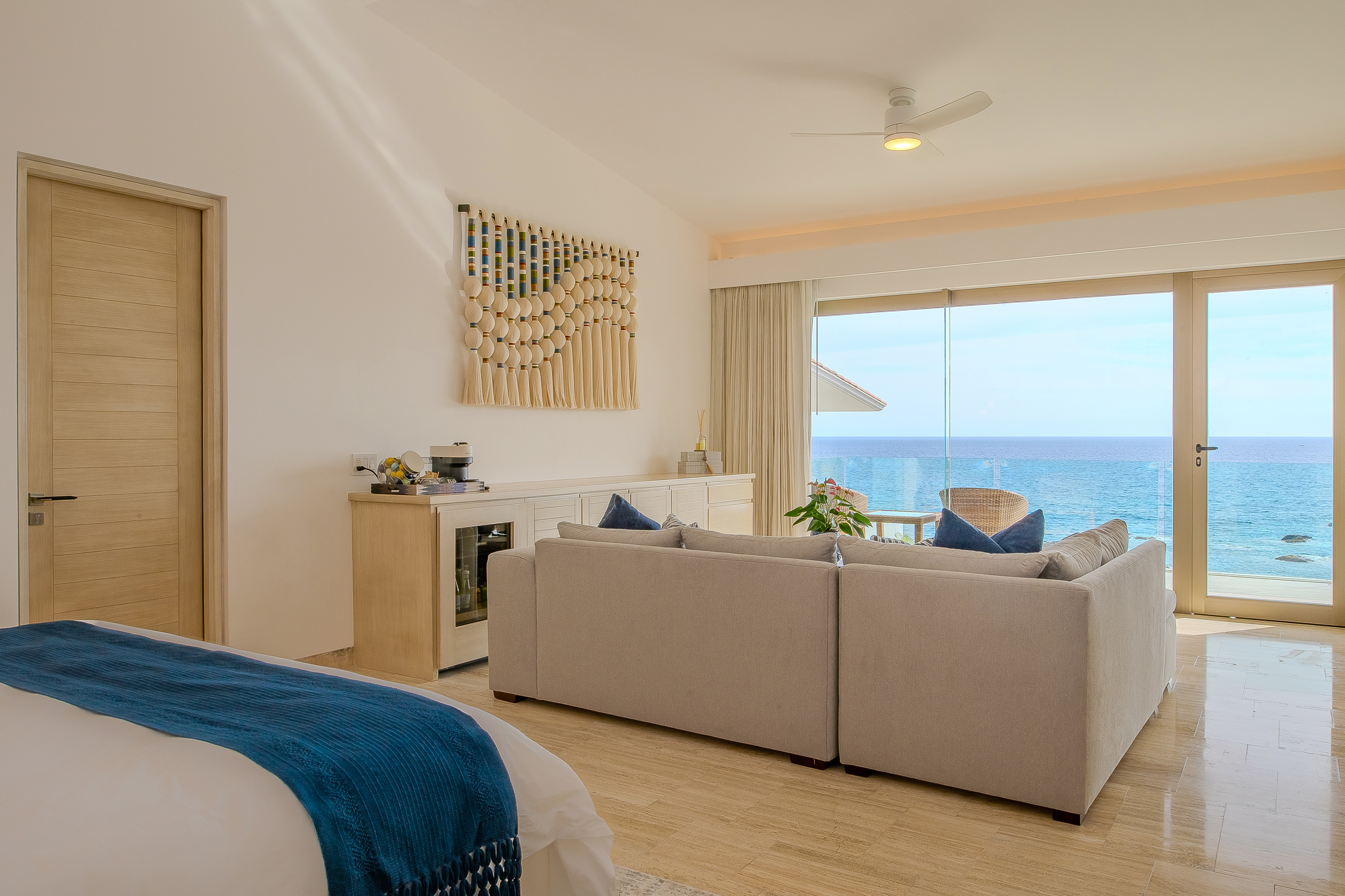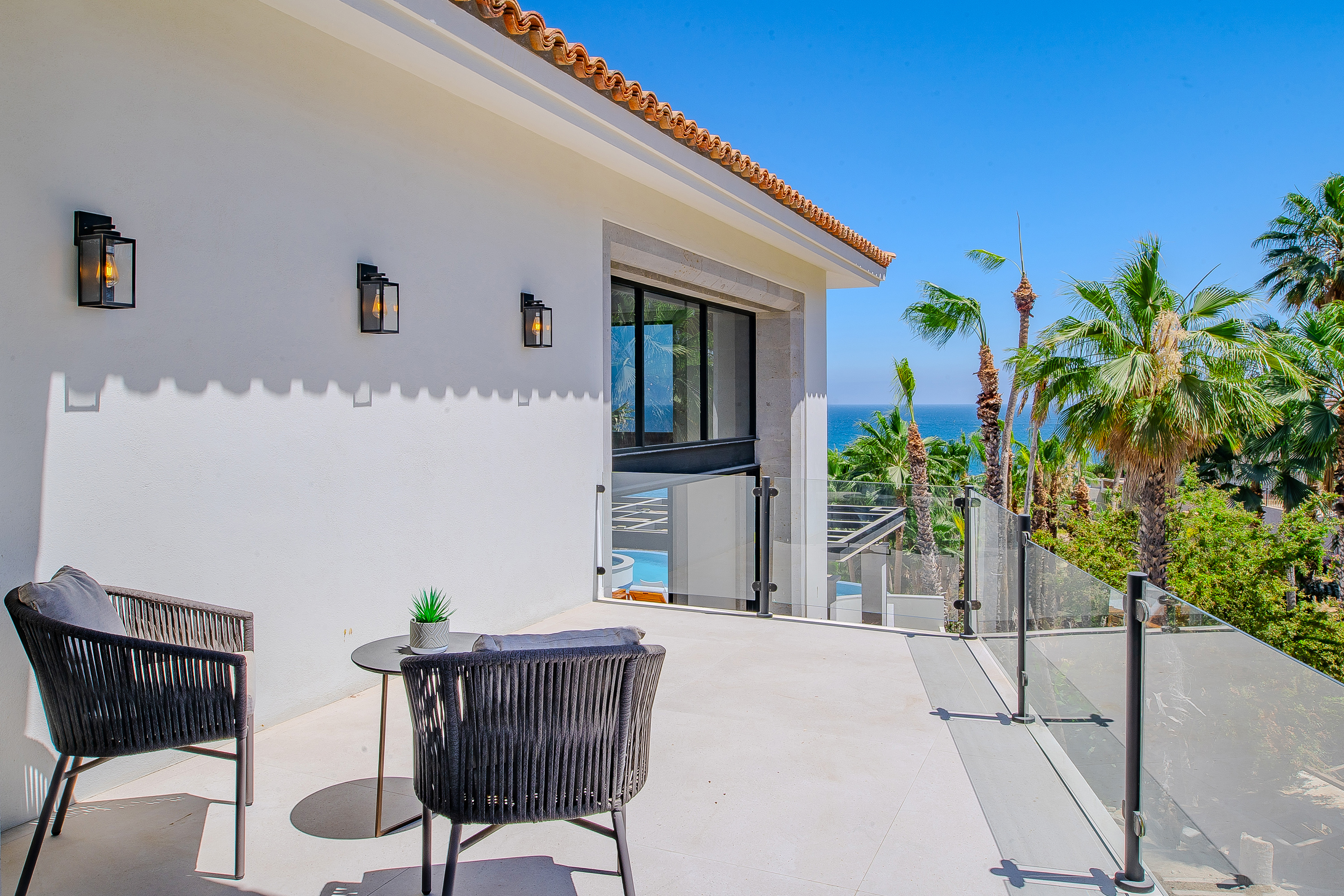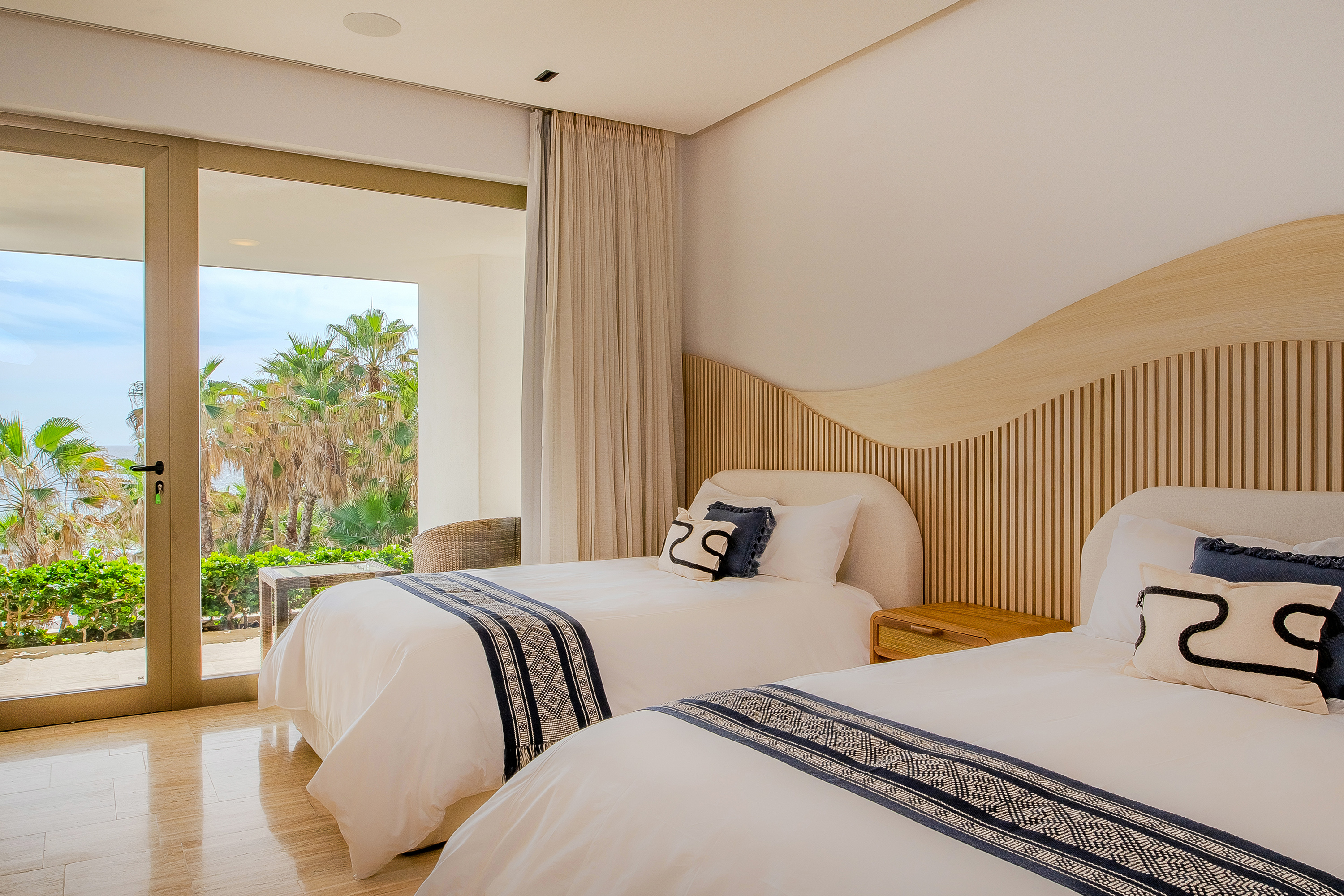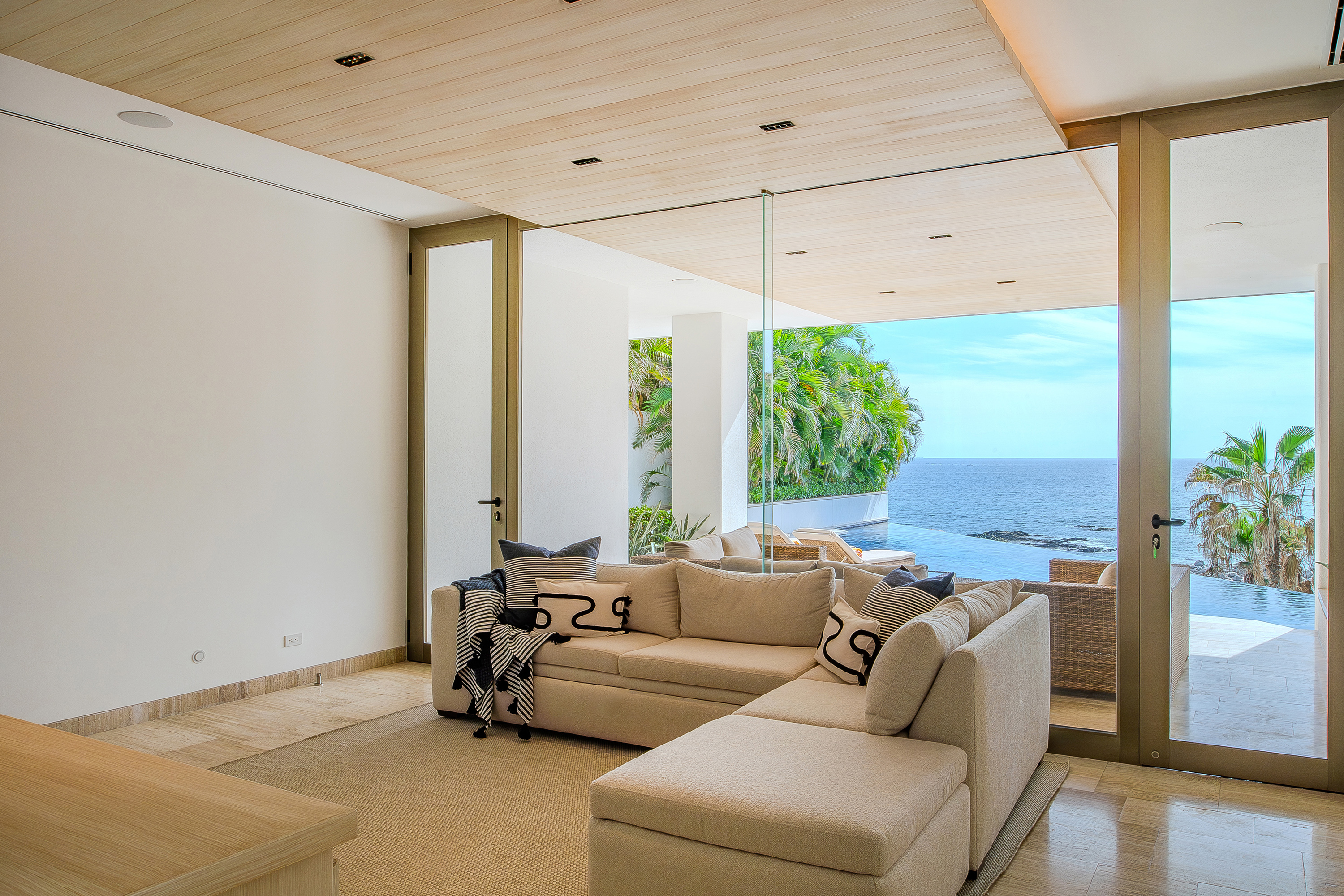 Villa Palma offers a warm, contemporary coastal ambiance with a serene courtyard, inviting living areas, and ocean-view suites designed for relaxation. Complementing it perfectly, Villa Mareas showcases sleek modern design with dramatic architecture, an infinity-edge pool, private spa with steam room, cold plunge, and Jacuzzi, along with premium fitness and entertainment spaces. Together, the villas provide luxurious ensuite bedrooms, generous gathering areas, gourmet kitchens, and beautiful outdoor terraces for dining, entertaining, and sunset moments. With direct beach access, concierge service, and daily housekeeping, Villa Palma and Villa Mareas offer an unmatched blend of privacy, comfort, and elevated coastal living in Los Cabos.