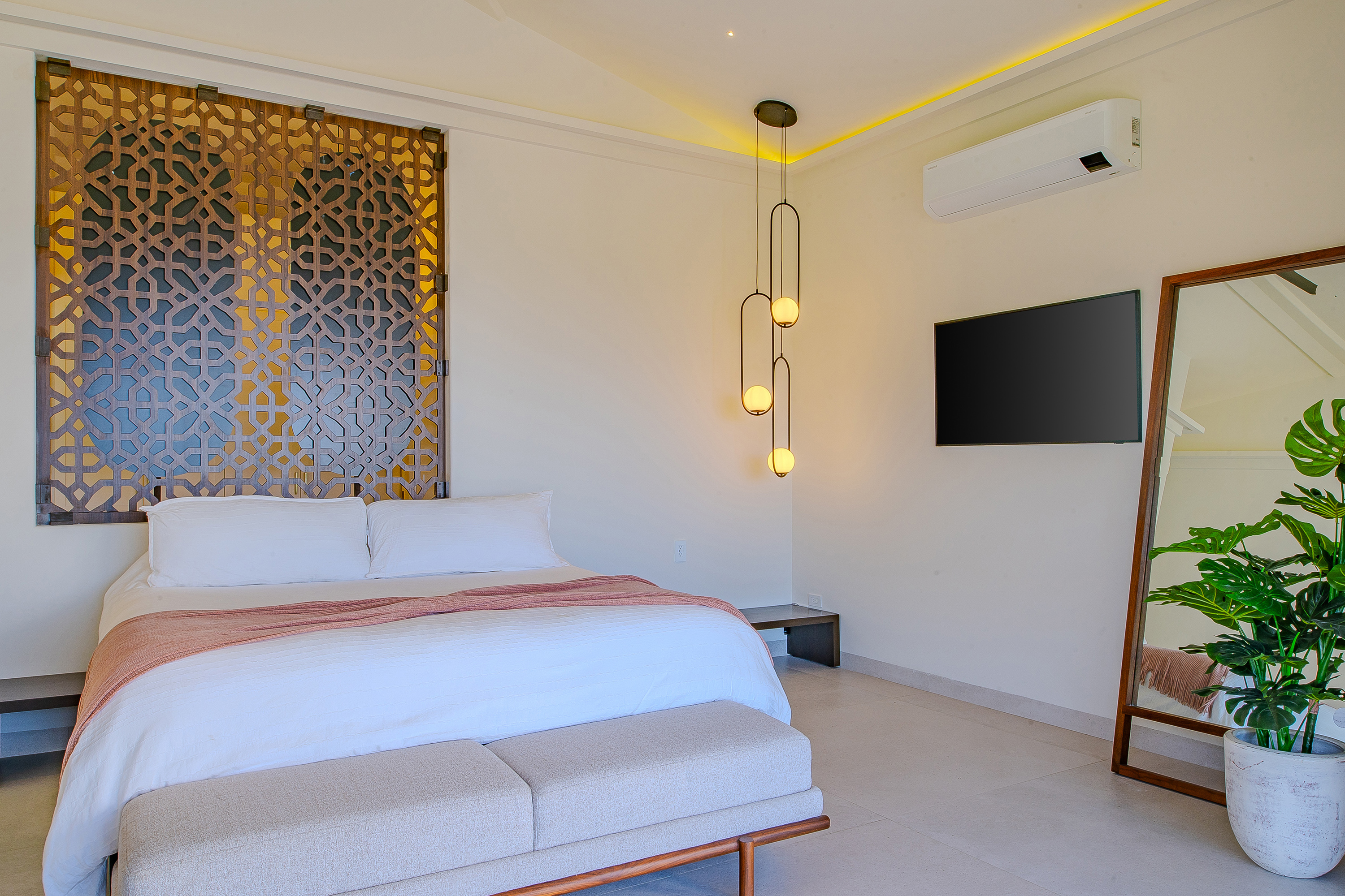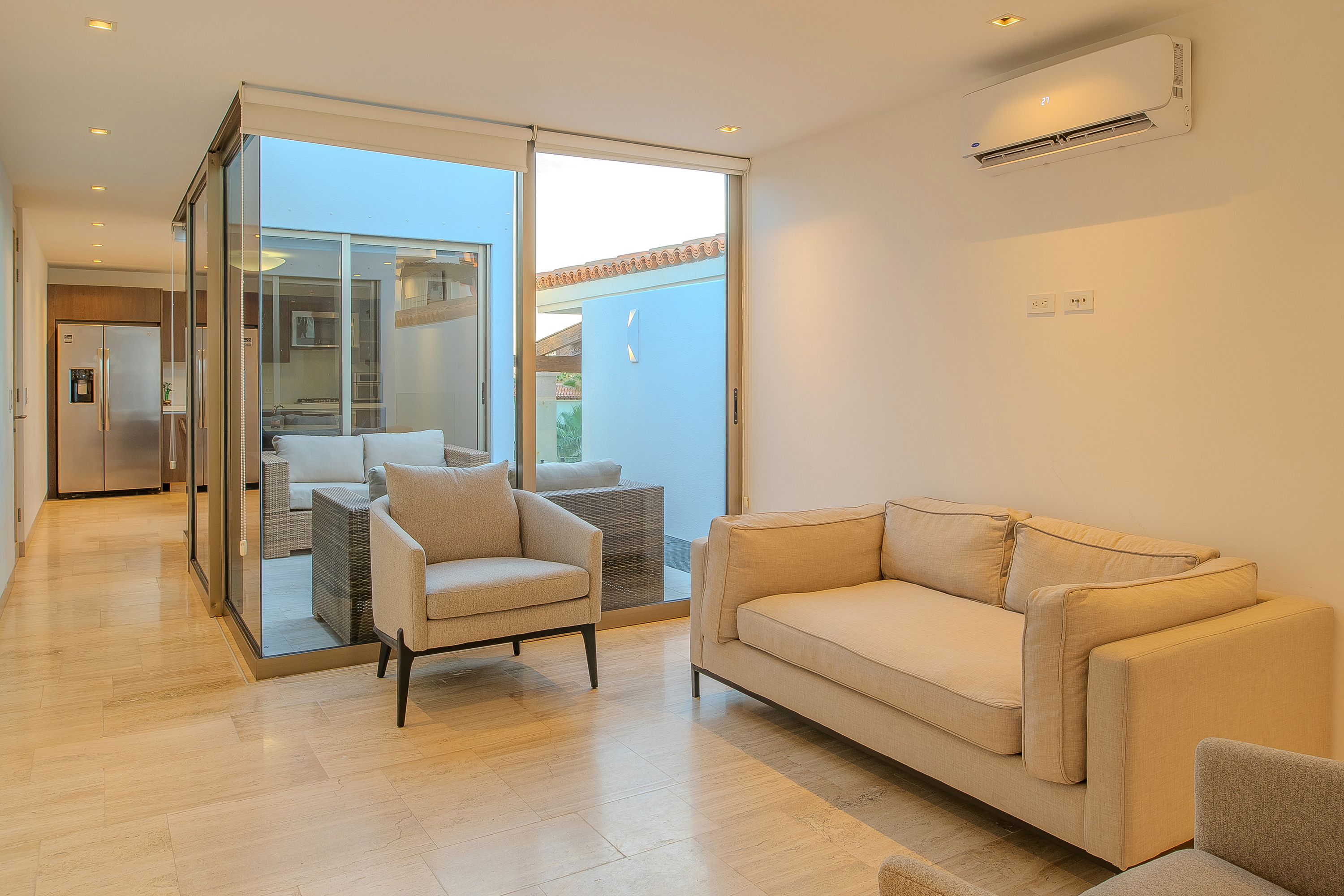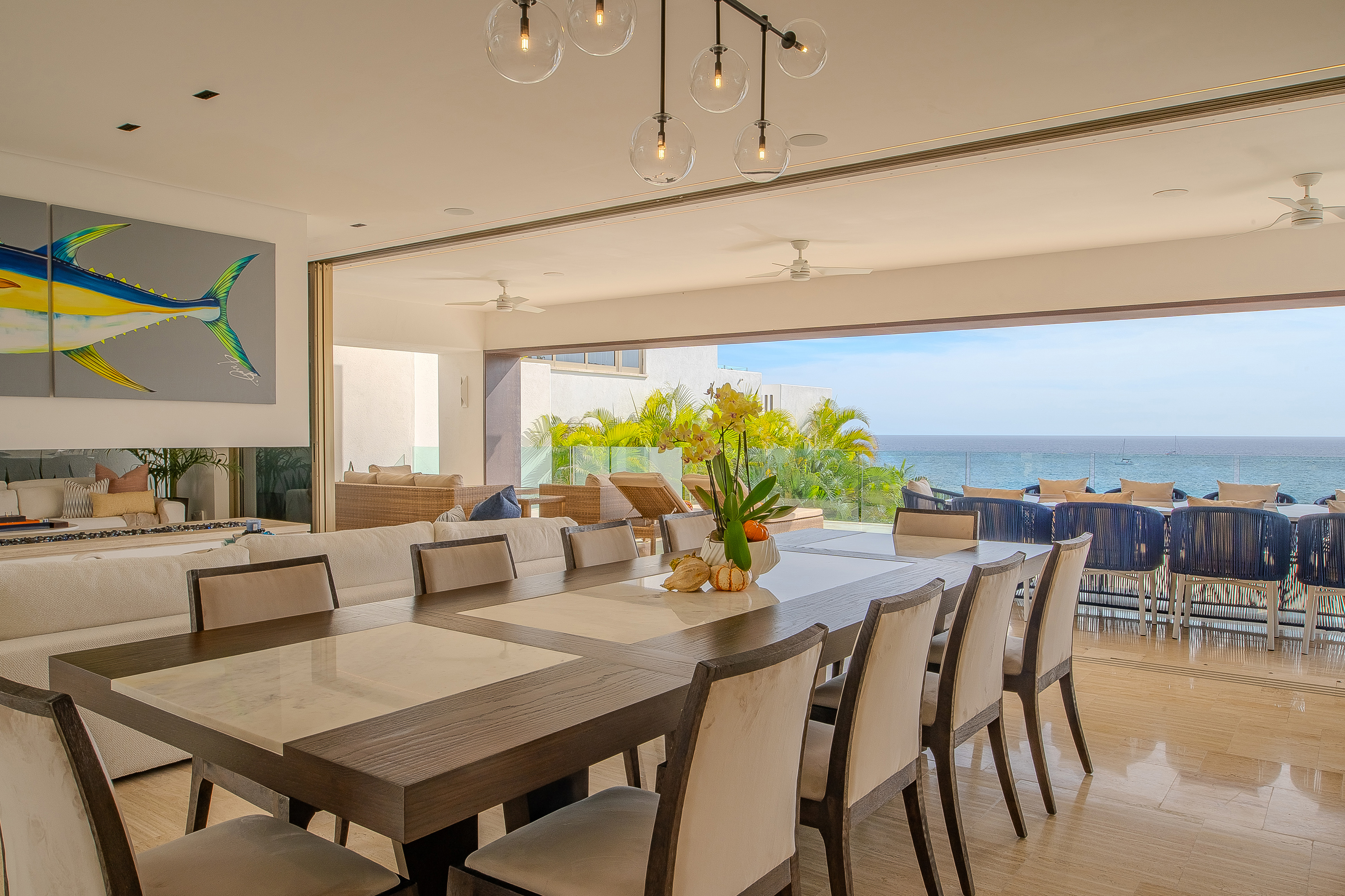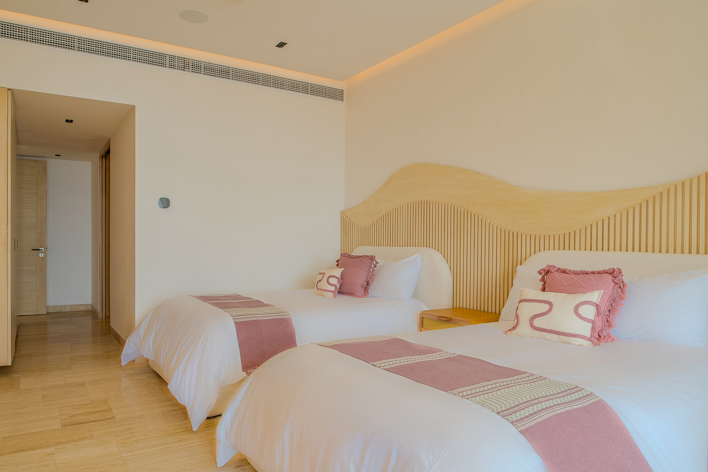 Villa Palma offers a warm, contemporary coastal ambiance with a serene courtyard, inviting living areas, and ocean-view suites designed for relaxation. Complementing it perfectly, Villa Mareas showcases sleek modern design with dramatic architecture, an infinity-edge pool, private spa with steam room, cold plunge, and Jacuzzi, along with premium fitness and entertainment spaces. Together, the villas provide luxurious ensuite bedrooms, generous gathering areas, gourmet kitchens, and beautiful outdoor terraces for dining, entertaining, and sunset moments. With direct beach access, concierge service, and daily housekeeping, Villa Palma and Villa Mareas offer an unmatched blend of privacy, comfort, and elevated coastal living in Los Cabos.